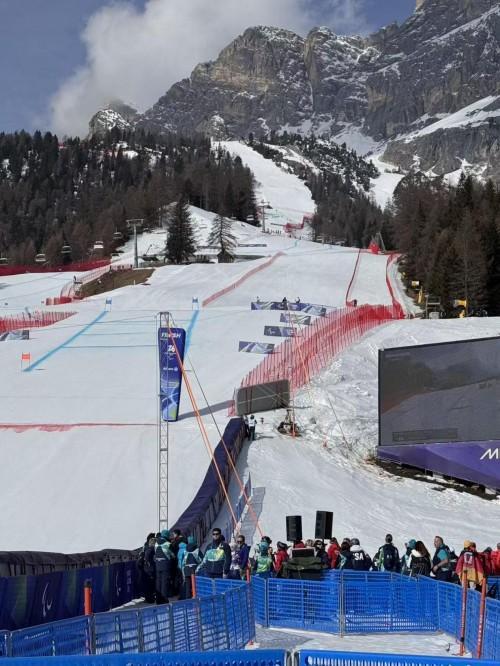 本次米兰冬残奥会残奥高山滑雪的全部竞技场次,均在科尔蒂纳托法纳高山滑雪中心进行,这条经国际残奥委会官方认证的专业赛道,是本届冬残奥会难度最高的雪道之一。站在赛道终点向上仰望,雪道如同从云端垂直倾泻而下,近乎直角的坡度让人望而生畏,连绵起伏的波浪形障碍层层叠叠,彻底遮挡住起点的视线,光是站在赛道旁,就能感受到这项运动的极限压迫感。
